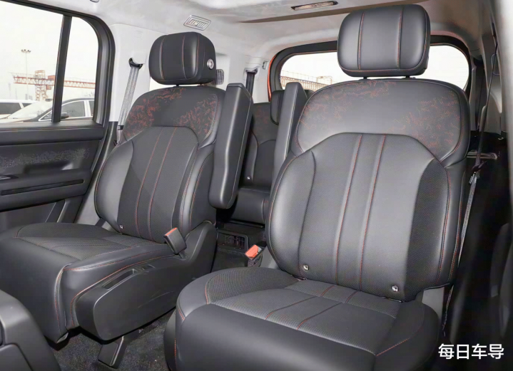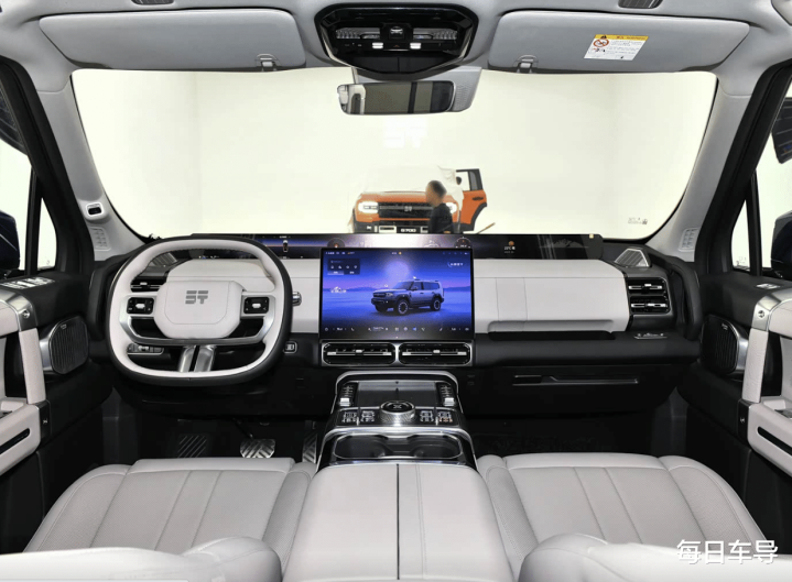 走进车内,这款车的内饰设计相对来说比较朴素,它是横向与纵向的元素进行堆砌,有种路虎车型或者说越野车型的设计理念,其次它的显示屏元素也很有大气凌厉的感觉,它搭载的是15.6英寸悬浮式中控屏,但是它与其他车型不同的是,它在中控台前端还有一块35.4英寸的贯穿式天际屏,这样的一个设计有点类似于小米YU7的元素。因为它有天际屏,它在越野的时候可以显示更多的行车的数据,当然了,这款车在副驾驶区还有扶手,除此之外在中控台区域它还有很多物理按键的搭配,这些我觉得都是很不错的一个设计理念,这个是针对于越野车而言的。